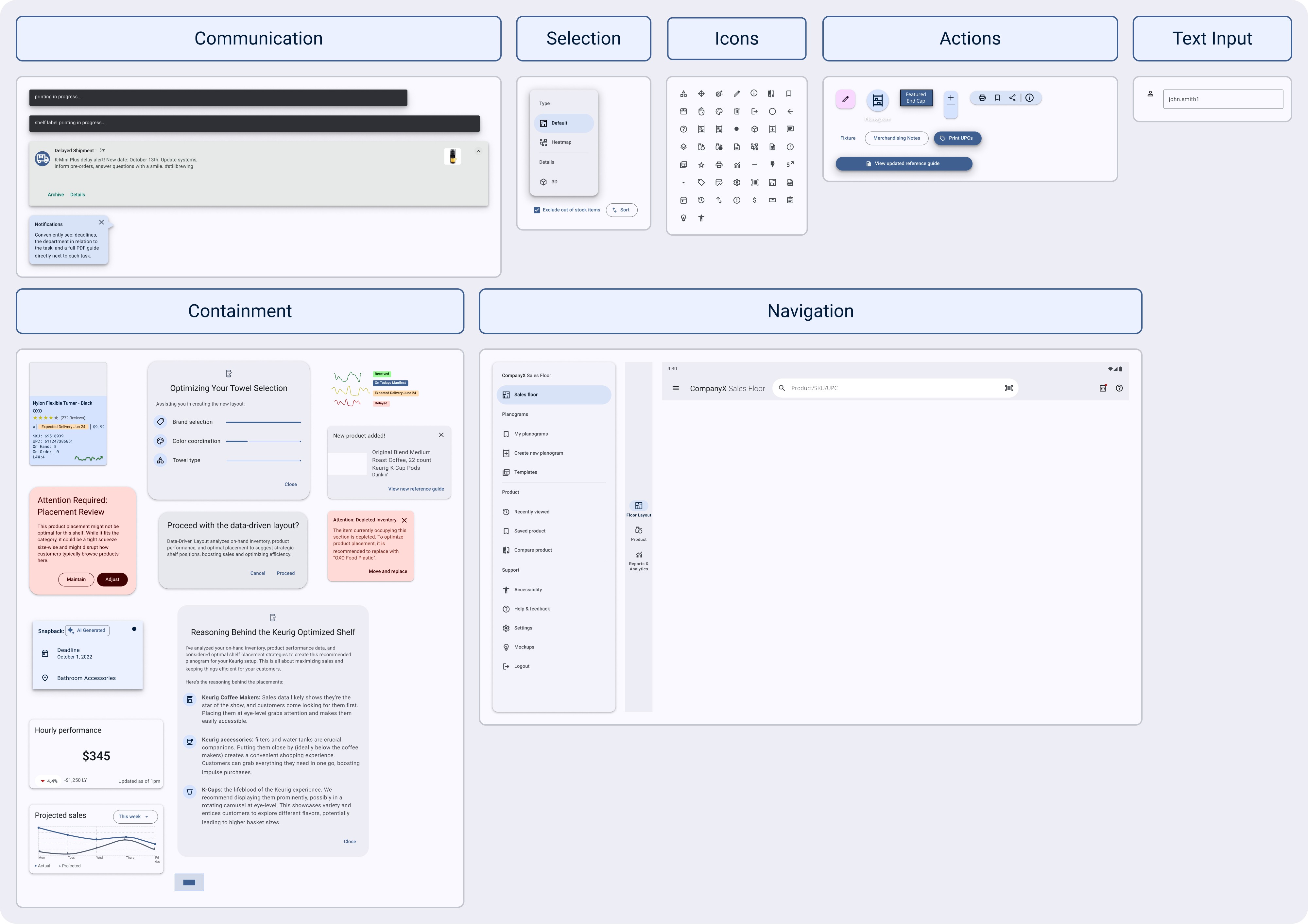 The design system for the planogram app was built using Google’s Material Design principles, focusing on cohesive components and interactions. This approach ensured a visually consistent, accessible, and user-friendly experience for both corporate and retail users.