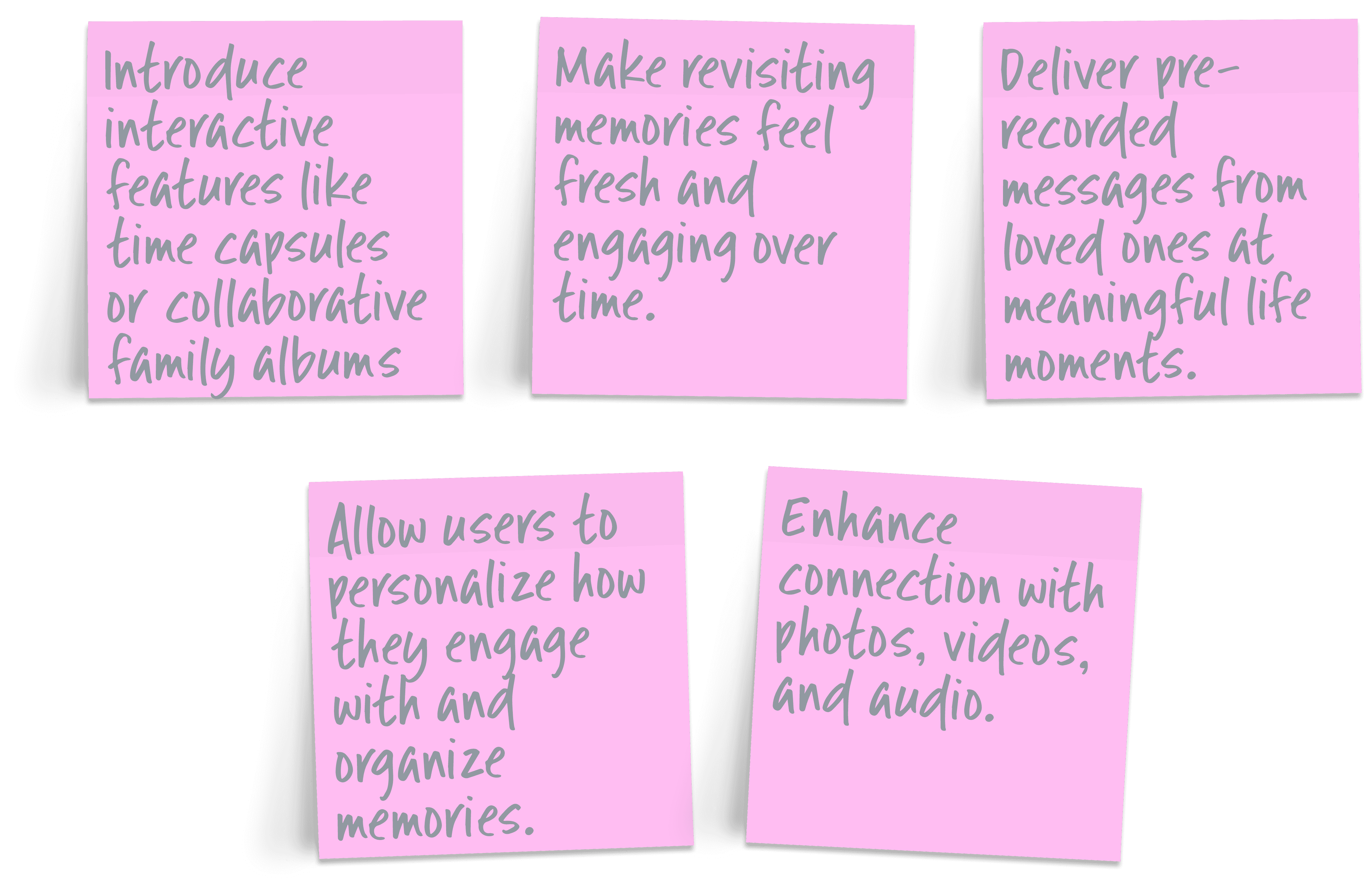 The 'How Might We' approach guided the development of the memories app that redefines how we honor loved ones, turning the process into a deeply personal and interactive experience. By focusing on emotional needs and strengthening connections, the app empowers users to create personalized memorials and share treasured memories in meaningful ways.